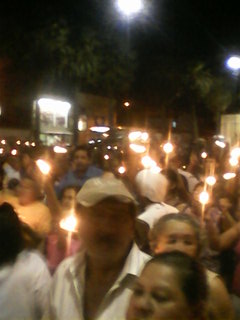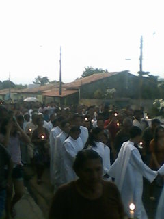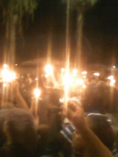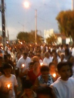 Uma multidão iluminou a noite com as velas nas mãos, muita alegria e muitos louvores nessa noite de homenagens.